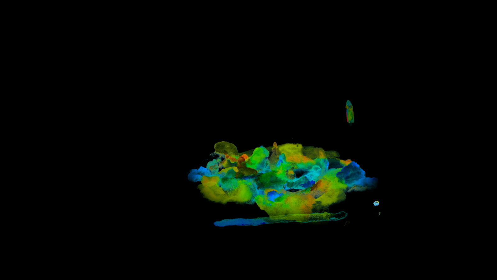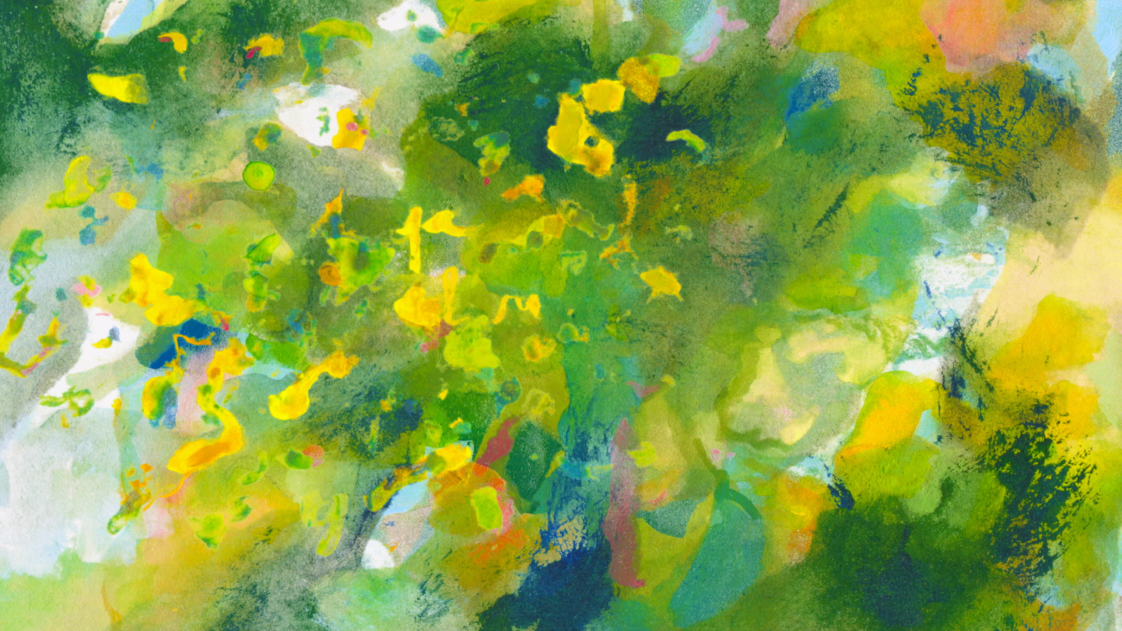見るほどに不思議な空間が説得力を増し、捉えきれない自然の感動が原風景として立ち現れる。網膜に映る色の喜びを分解し、再構成したかのような多層の奥行きは、自然の空間へと静かに接続されていく。その奥深さは、同時にアニメーションの手法としての画面構成を拓くよう。