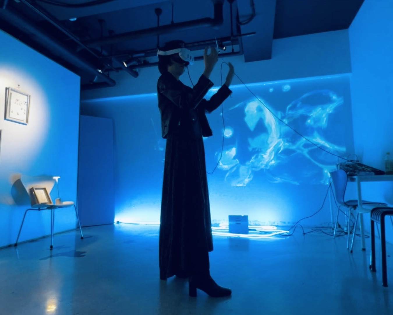 異なる感覚が影響し合うことは日常的に体験することだが、本作はこの感覚の〈クロスモーダル〉を利用し、音に触れているように感じるという非日常的体験を作り出している。MR技術により、空間に浮かぶ水の塊のようなオブジェクトに触れると、形と響きが変化する。視覚・聴覚・身ぶりの相互作用が脳内で「音に触っている」ような錯覚を引き起こす。前作の課題を元に、水のオブジェにはAIベースの流体シミュレーションを導入、一から設計し直して、インタラクションの精度を大きく向上させている点も高く評価される。作者自身の感覚過敏を背景としながら、わたしたちの感覚世界の複雑さに気づかせるアートであると同時に、世界各地で進められる没入感のデザインにとっても、刺激的な研究となるであろう。