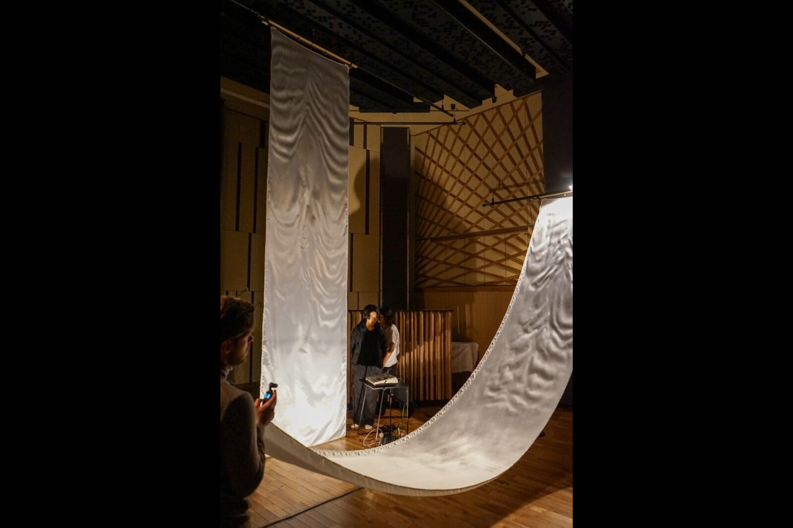 そして布の動きは、音を可視化するだけではなく、血流をふと思い起こさせるような、ミクロの繊細さと、巨大な布が生む大胆さが同居しています。誰も思いつかない音の輪郭を際立たせるような体験をさらに押し広げていってほしいです。これからも楽しみにしています。